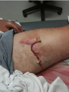 The outside fin went in and out of my leg so fast, through a 4.3MM wet tie, I didn’t even know it had happened. The fin was that sharp. It missed all my major muscles, and did not cripple me, but the doc said I was perilously close to my femoral artery. You can see the stitches. I have broken a leg (tin/fib spiral), my Humorous, fingers, the next day this was the most pain I have ever been in. Mentally after an injury so severe, it was hard to surf again, the then GF instantly hated it and wanted me to quit. A east coast pro I have always looked up too, Ben, said a few things to me that made me realize you can’t be scared and David and the good people at Surfco made a product that helped me feel safer. You can good on people being safe all you want but until you are on the beach with your leash as a tourniquet, thinking you are bleeding to death, you will never know what some peace of mmd will being you. So I am once again pulling into closeouts trying to impress a my new girlfriend. God bless.